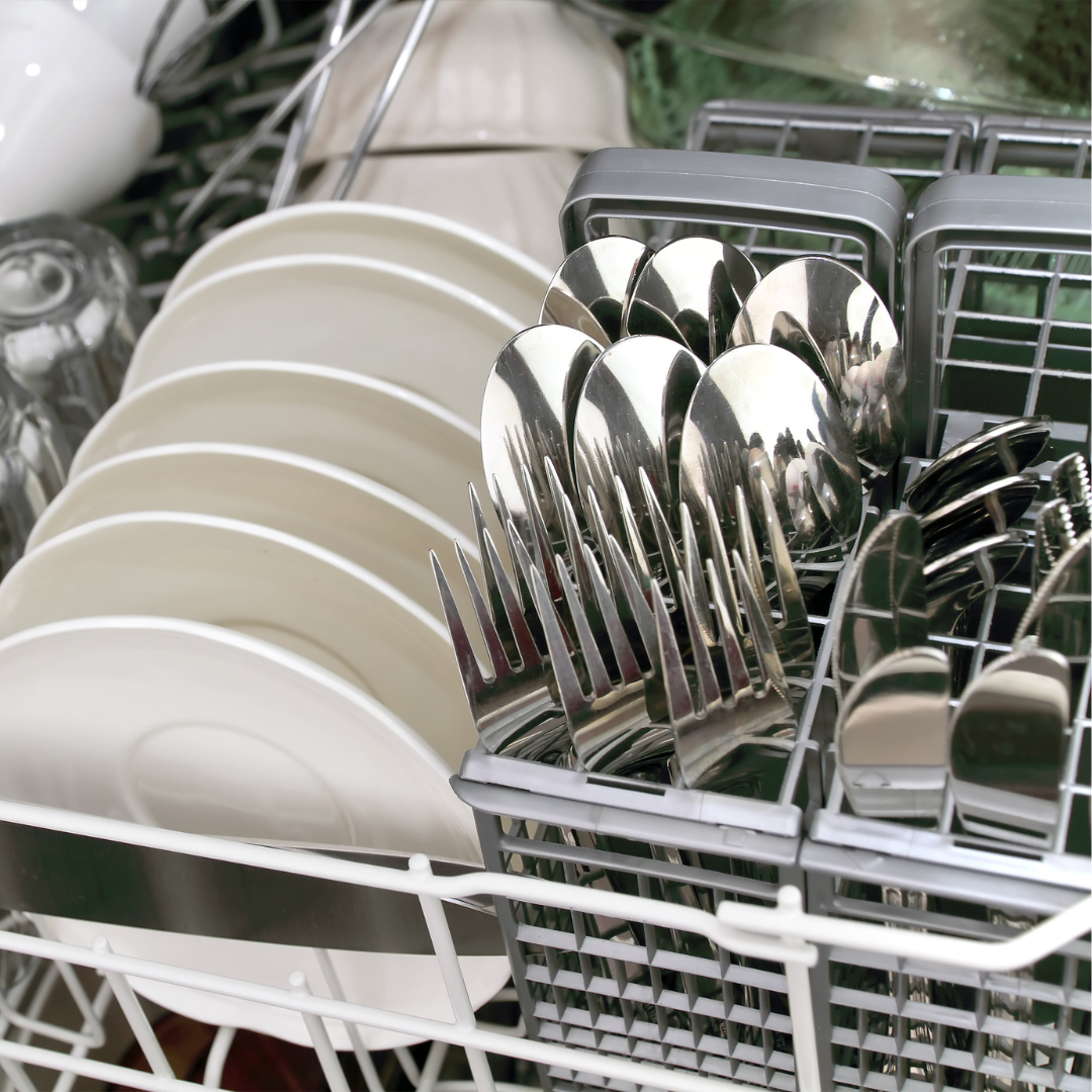2/ Rinse food residue from cutlery.