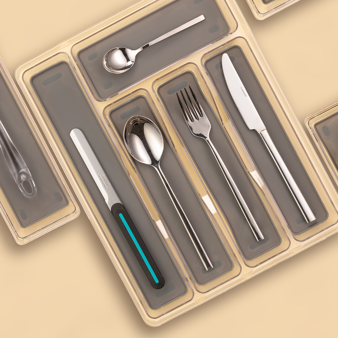 9/ Put the dried cutlery away in the cutlery rack. The cutlery should be dry and clean. Moisture definitely does not belong in the cutlery. If possible, store cutlery individually so that they do not rub against each other. Alternatively, if space does not permit, store cutlery at least in individual types. Silver cutlery can be stored in a case or directly in a drawer with felt padding designed just for that cutlery. Learn more about silver cutlery in the blog Eating with silver is healthy.